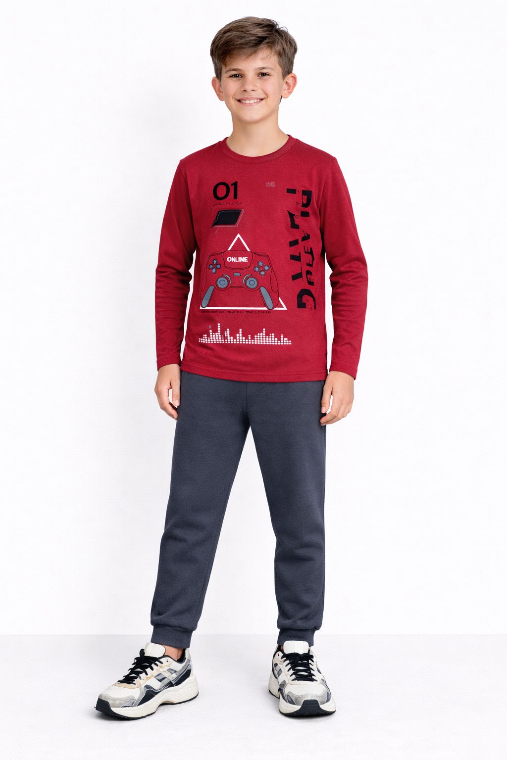 O Conjunto Cato Lelê Gaming Online é perfeito para os dias frios, com toque macio e aconchegante por ser flanelado. A blusa de manga longa na cor bordô traz estampa moderna com tema gamer, ideal para quem curte um visual divertido e cheio de estilo.
