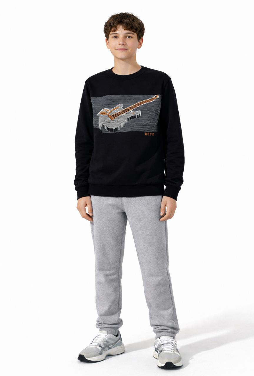 O Conjunto Kyly Rock Guitar é perfeito para os dias mais fresquinhos, com toque macio e aconchegante por ser flanelado. A blusa preta de manga longa traz estampa de guitarra com estilo urbano e moderno, ideal para quem curte um visual cheio de atitude.