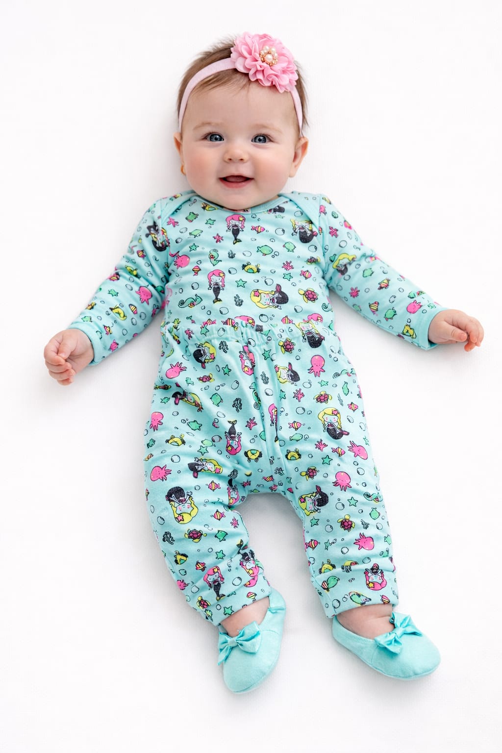 O Conjunto Mafessoni Body e Mijão é perfeito para deixar o bebê confortável e estiloso no dia a dia. Com estampa divertida em tema fundo do mar, com sereias, peixinhos, estrelas e elementos marinhos, ele traz um visual alegre e delicado. O body de manga longa possui modelagem prática para facilitar as trocas, enquanto o mijão acompanha com caimento soltinho, garantindo liberdade de movimento e aconchego para o bebê brincar e descansar.