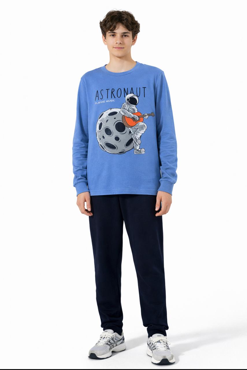 O Conjunto Anale Astronaut Playing Music é ideal para a meia estação, oferecendo conforto e um visual divertido para o dia a dia. A blusa de manga longa na cor azul traz estampa de astronauta com tema musical, deixando o look moderno e cheio de personalidade.