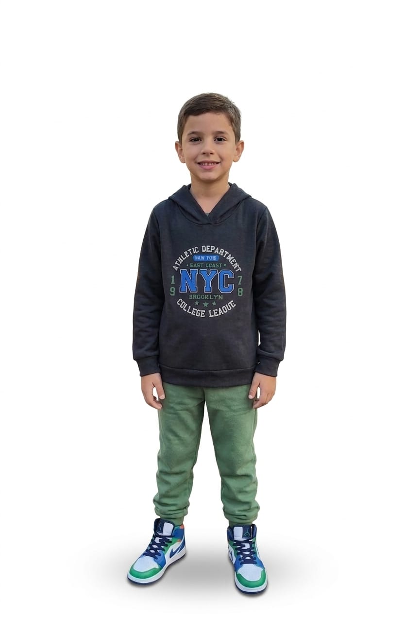 O Conjunto Moletom Infantil Cato Lelê NYC é a escolha ideal para os pequenos que adoram um visual moderno e confortável. Com blusa de moletom com capuz em tom escuro e estampa frontal inspirada no estilo urbano, combinada com calça em cor contrastante, o conjunto traz personalidade e praticidade para o dia a dia.
