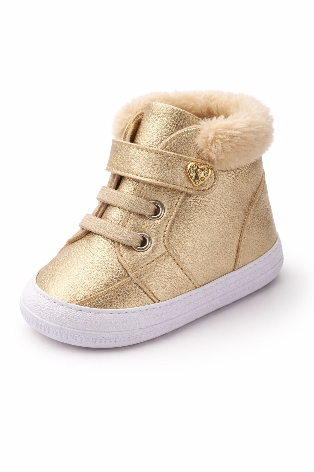 Encantador e cheio de brilho, o tênis botinha infantil dourado é a escolha perfeita para deixar os dias mais frios ainda mais estilosos! Com acabamento metalizado e detalhe super fofo em pelúcia no colarinho, ele garante um visual moderno e delicado ao mesmo tempo.